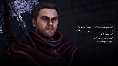 Стоянка и таверна "Брат короля". На входе стоит избитый парень: его избили стражники. Идём к пьяным в хламину стражникам, спрашиваем: за что? Нас очень грубо посылают далеко-далеко; у нас два варианта: ответит такой же грубостью либо струсить и прислуживать стражам.